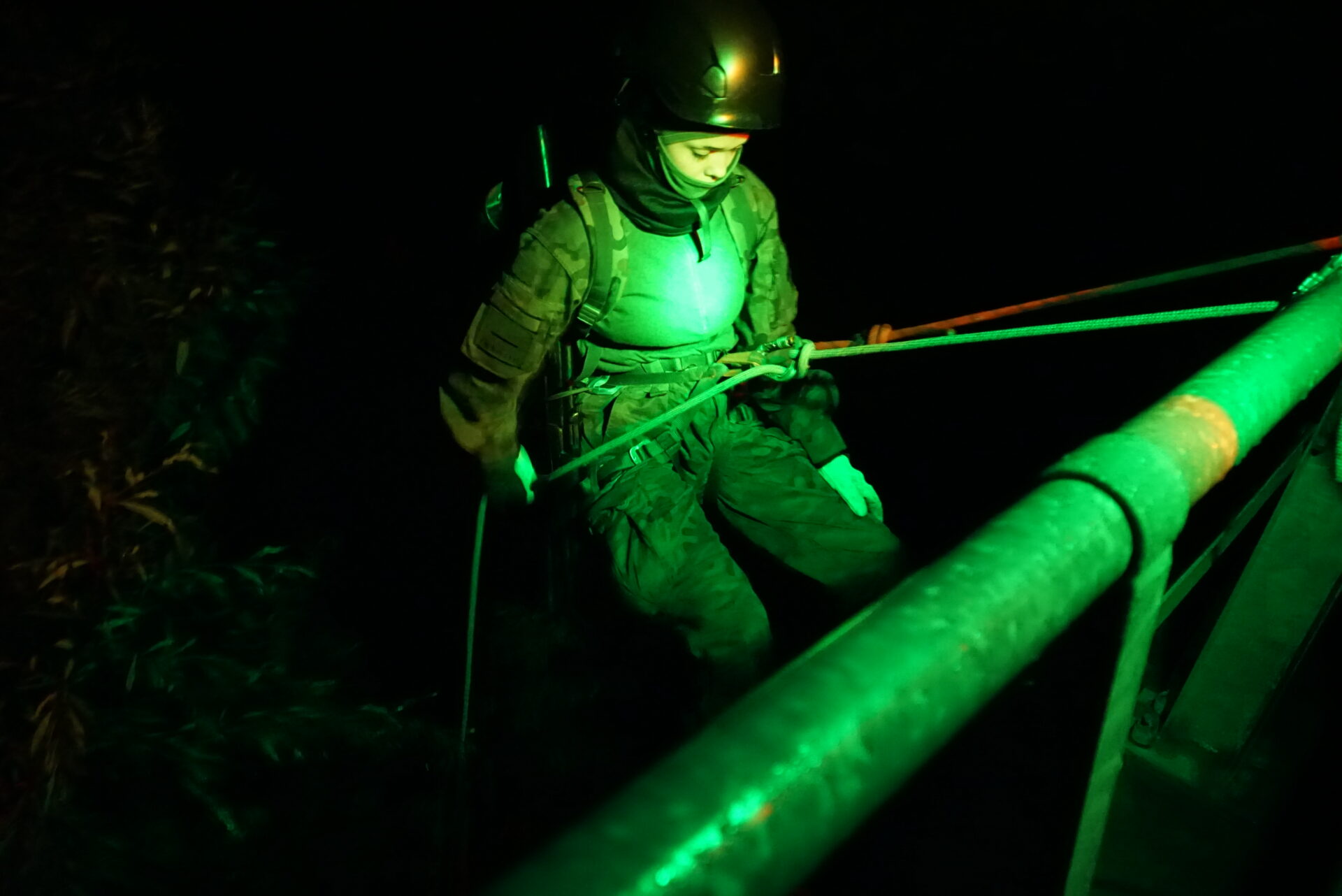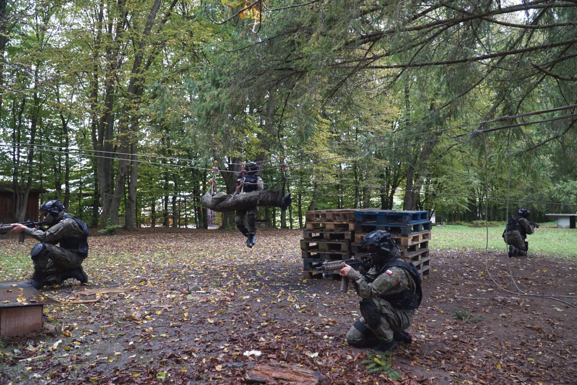 - wykorzystanie technik linowych z elementami alpinistycznymi (zjazd klasyczny, bojowy głową w dół i zejścia twarzą w dół)