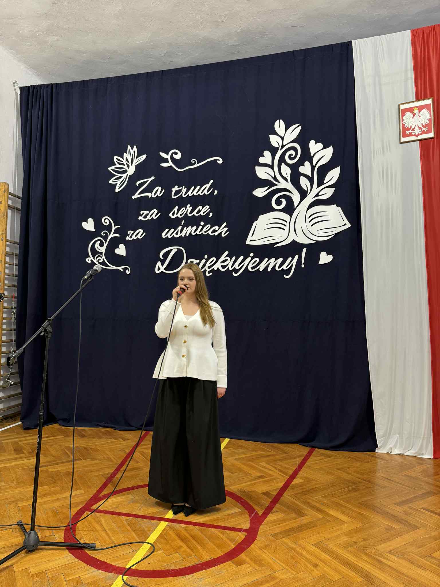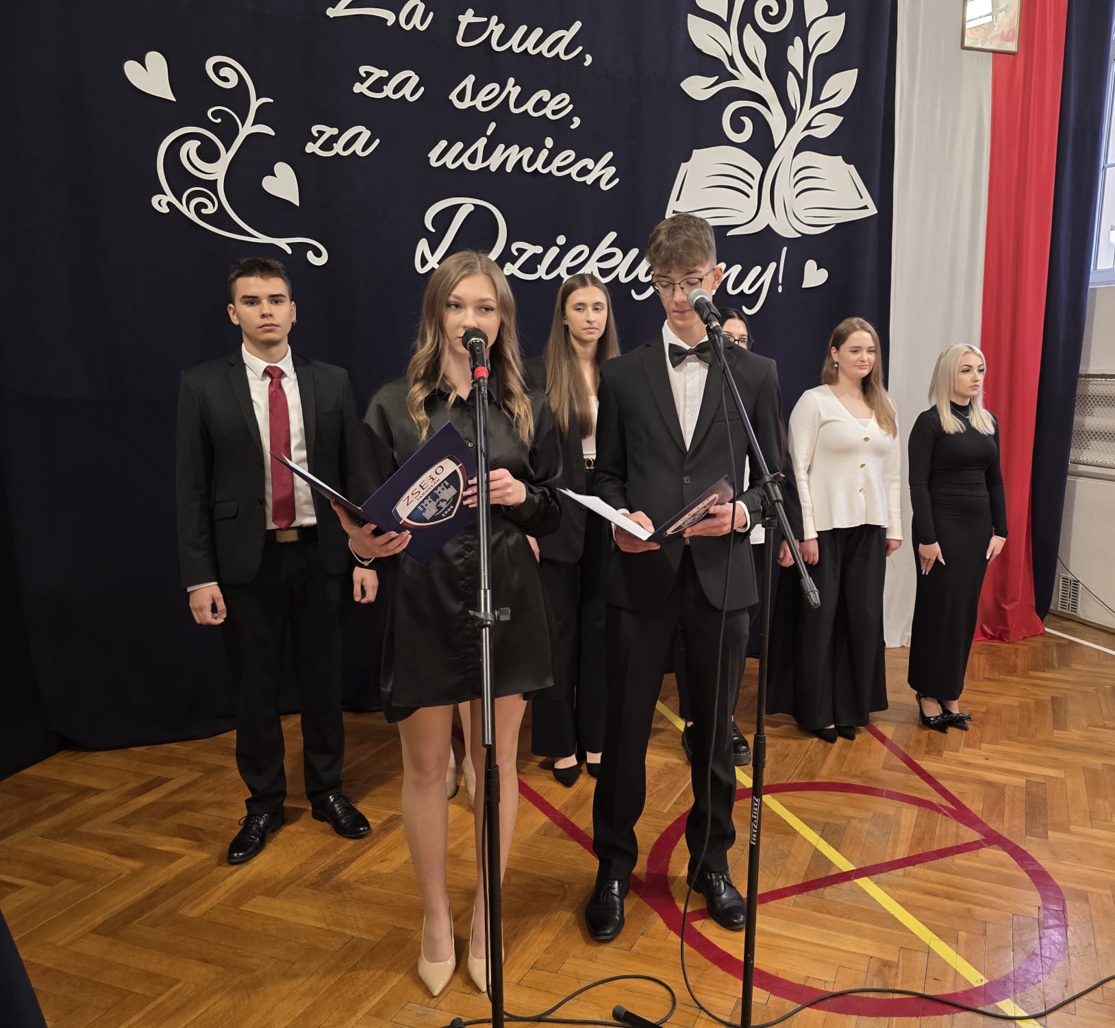 Dziś w naszej szkole odbyła się uroczystość z okazji Dnia Edukacji Narodowej. W jesiennej atmosferze pełnej ciepłych barw, wdzięczności i refleksji, uczniowie złożyli nauczycielom i pracownikom szkoły serdeczne życzenia oraz zaprezentowali piękny program artystyczny. Złote liście za oknami przypominały, że to właśnie jesień – czas zadumy, ale też wdzięczności za codzienny trud i pasję, z jaką nauczyciele dzielą się swoją wiedzą. 🍁📚