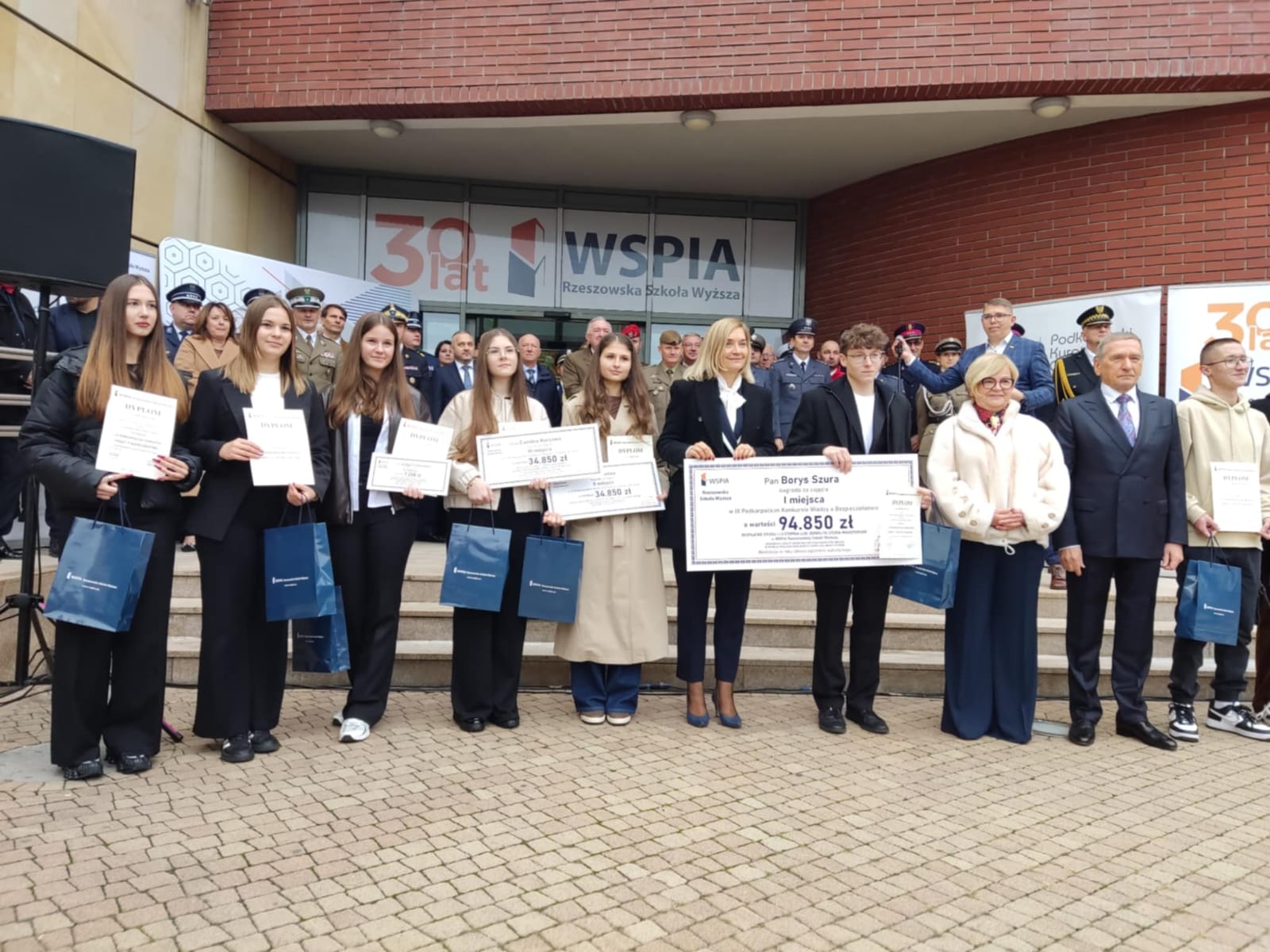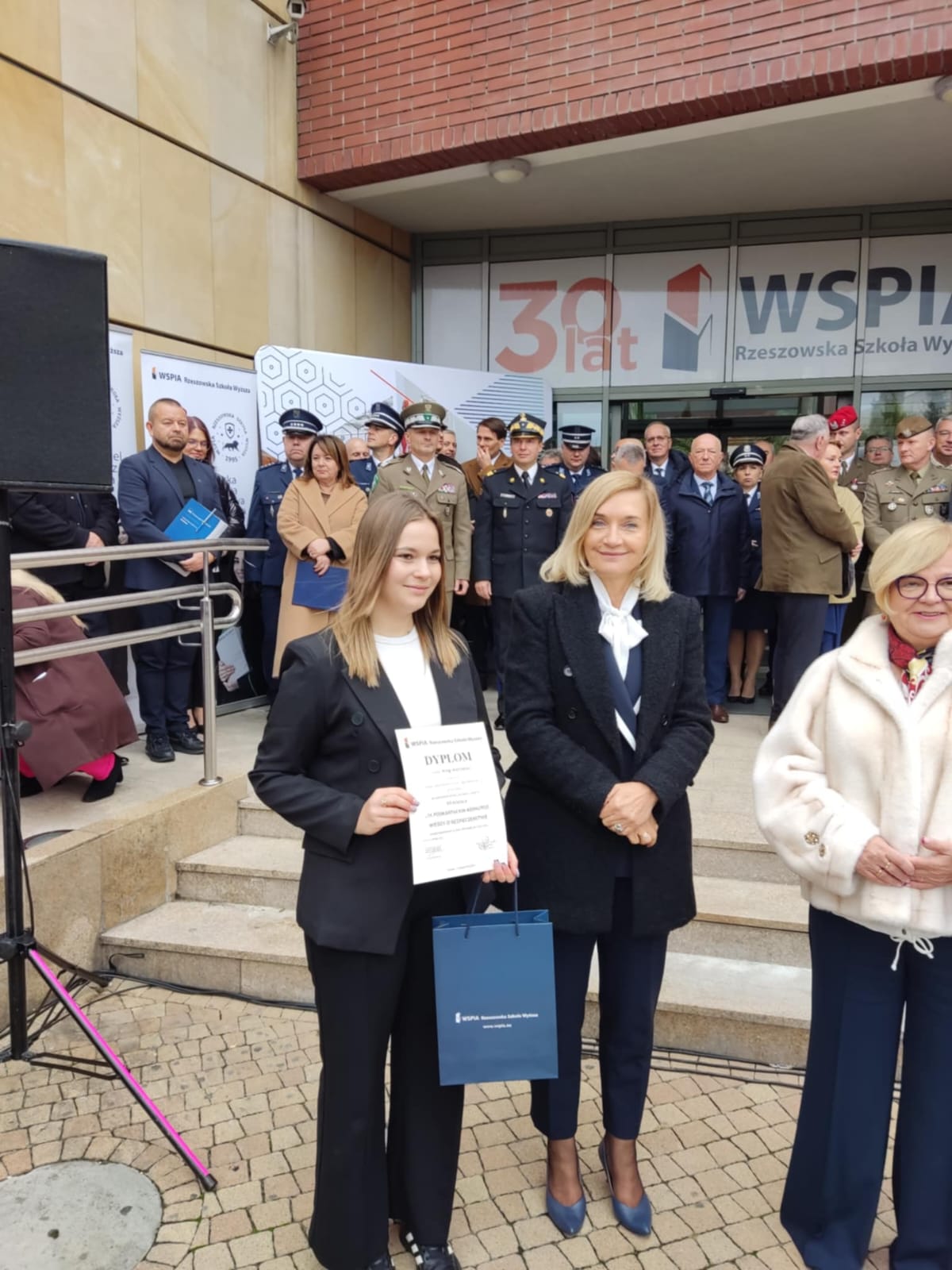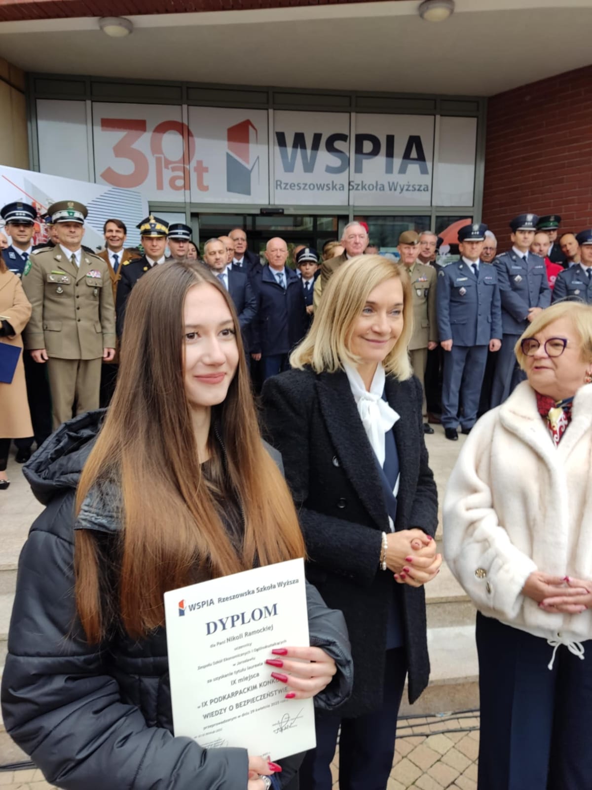 W dniu 17 października 2025r. na terenie Wyższej Szkoły Prawa i Administracji w Rzeszowie, po raz 12 odbyło się Święto Bezpieczeństwa. Podczas wydarzenia prezentowały się służby mundurowe i inne podmioty działające na rzecz bezpieczeństwa województwa podkarpackiego. Wręczono także nagrody dziesięciu laureatom IX edycji konkursu Wiedzy o Bezpieczeństwie. Miło nam poinformować, że wśród laureatów, którzy odebrali nagrody i dyplomy, były dwie uczennice ZSEiO Jarosław – Kinga Kalińska i Nikola Ramocka. W wydarzeniu wzięło udział ponadto 31 uczniów z klasy 1P o profilu mundurowym. Do zobaczenia za rok.