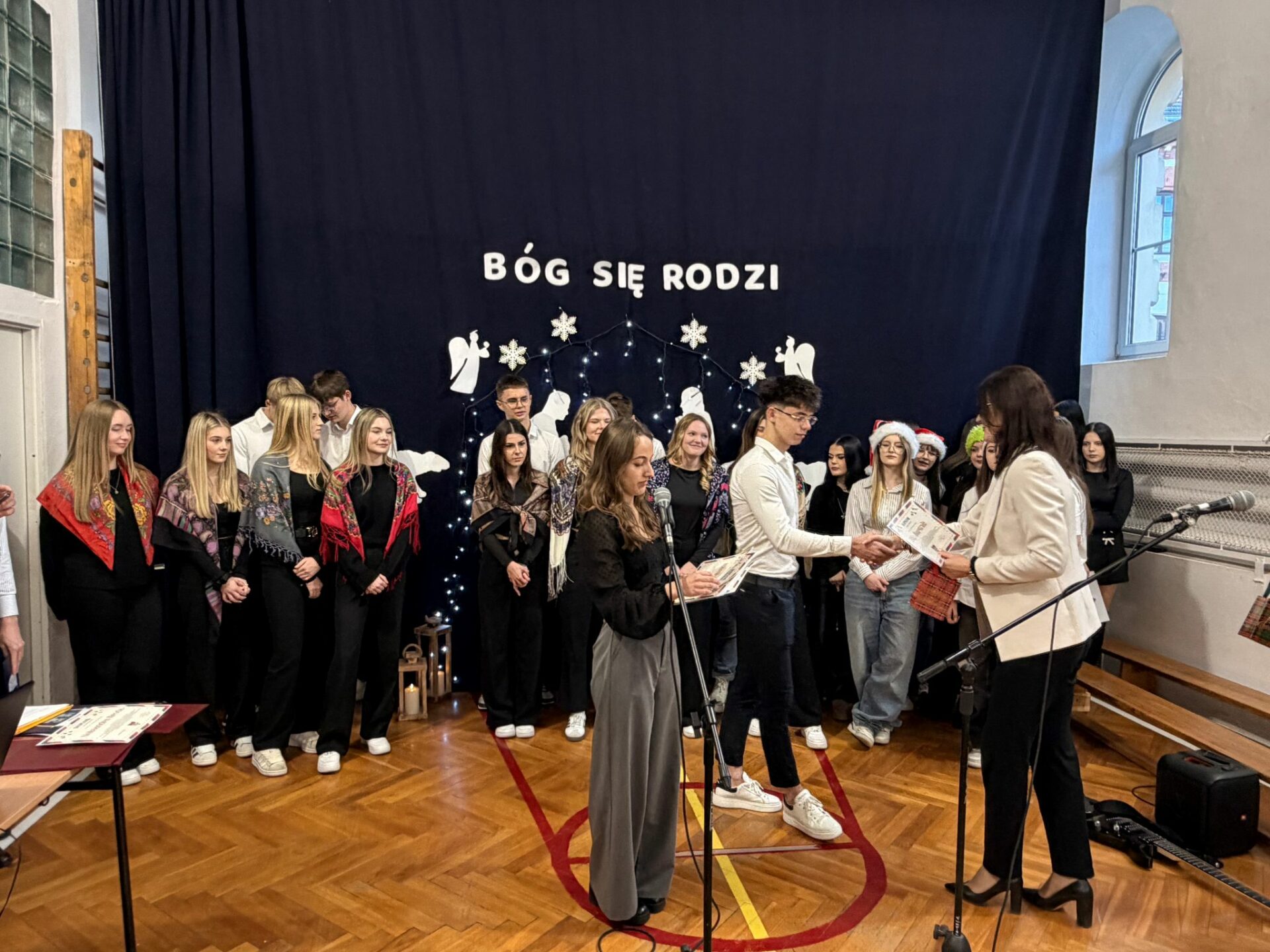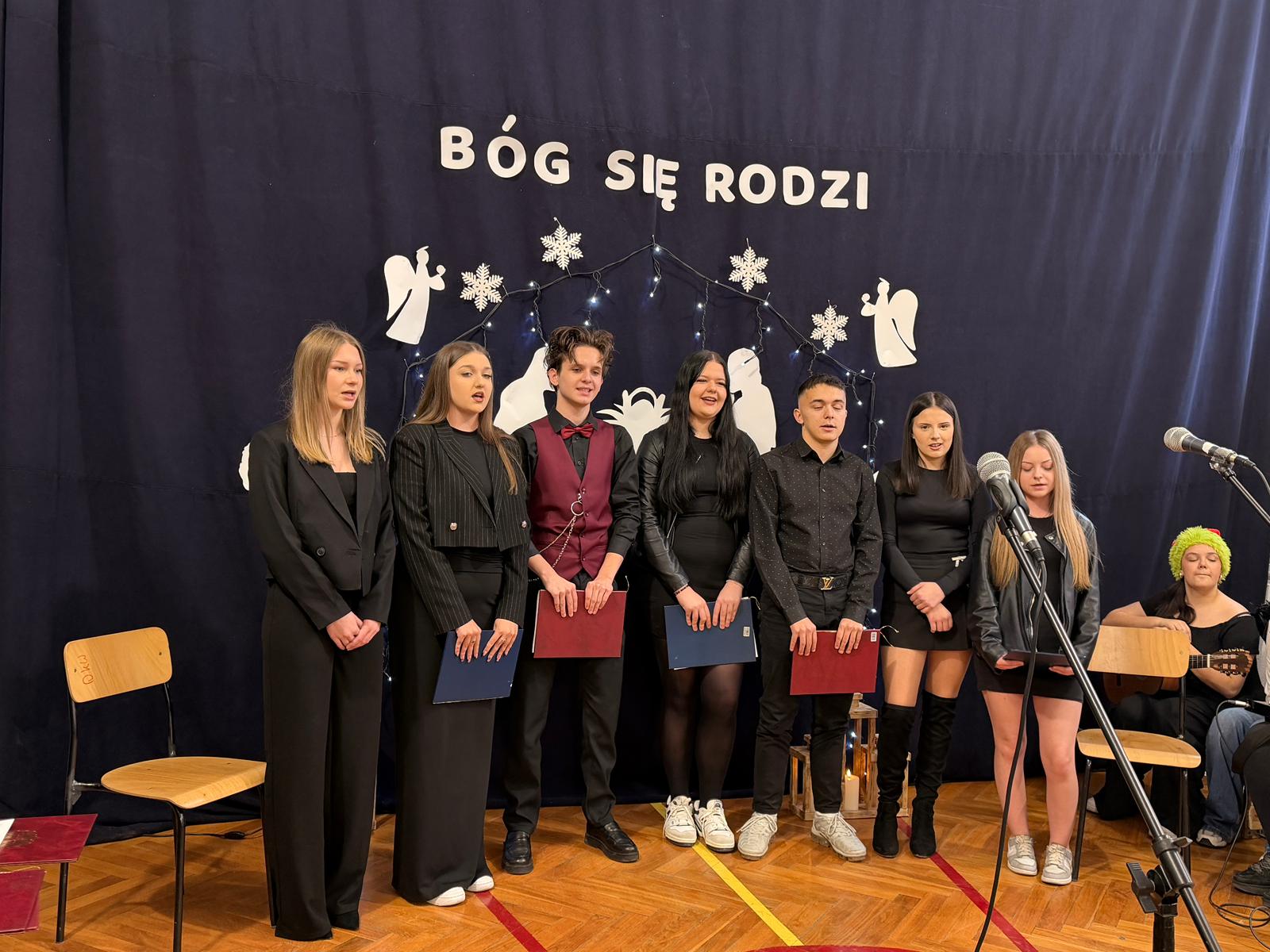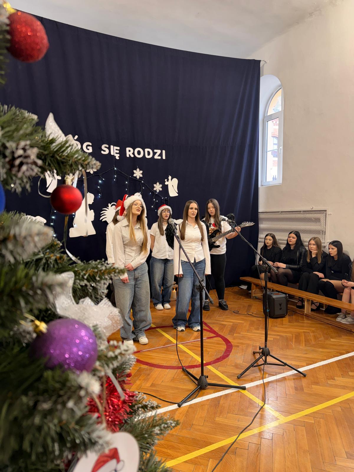 18 grudnia w Ekonomiku odbył się II Festiwal Kolęd i Pastorałek, który na długo pozostanie w naszej pamięci. Nasi uczniowie po raz kolejny udowodnili, że drzemią w nich niezwykłe talenty. Podczas wydarzenia zaprezentowali aż osiem wyjątkowych utworów świątecznych, zachwycając publiczność zarówno poziomem artystycznym, jak i ogromnym zaangażowaniem. Na scenie mogliśmy podziwiać piękne występy grupowe, duety, trio oraz niezwykle poruszający występ solowy. Całość dopełniały przepiękne stroje oraz zachwycająca gra na instrumentach, które nadały występom niepowtarzalny charakter i prawdziwie świąteczną magię. Festiwal wprowadził wszystkich w radosny, pełen wzruszeń nastrój zbliżających się Świąt Bożego Narodzenia. Serdecznie dziękujemy wszystkim wykonawcom za pasję, talent i ogrom pracy włożonej w przygotowanie występów. Był to dzień pełen muzyki, emocji i niezapomnianych chwil. Już dziś zapraszamy na kolejną edycję festiwalu w przyszłym roku.