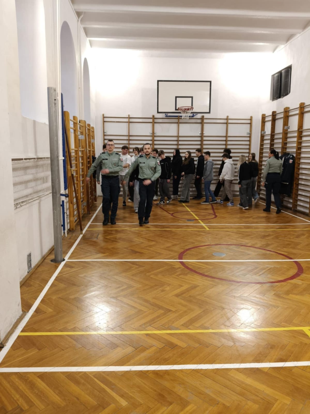 Podczas szkolenia omówiono postawę zasadniczą oraz odpowiednie ułożenie dłoni i stóp, synchroniczne wykonywanie zwrotów i zatrzymań na komendę, co jest najtrudniejszym, a zarazem najbardziej widowiskowym elementem przemarszu kompanii. Dla uczniów była to wartościowa lekcja, która pozwoliła zrozumieć, że za efektownym wyglądem Kompanii Honorowej stoją godziny żmudnych ćwiczeń, wysiłek, duża samokontrola i wzajemne zaufanie członków kompanii.